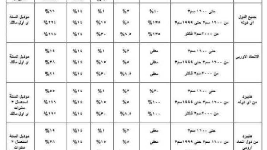 اسعار جمارك السيارات في مصر.