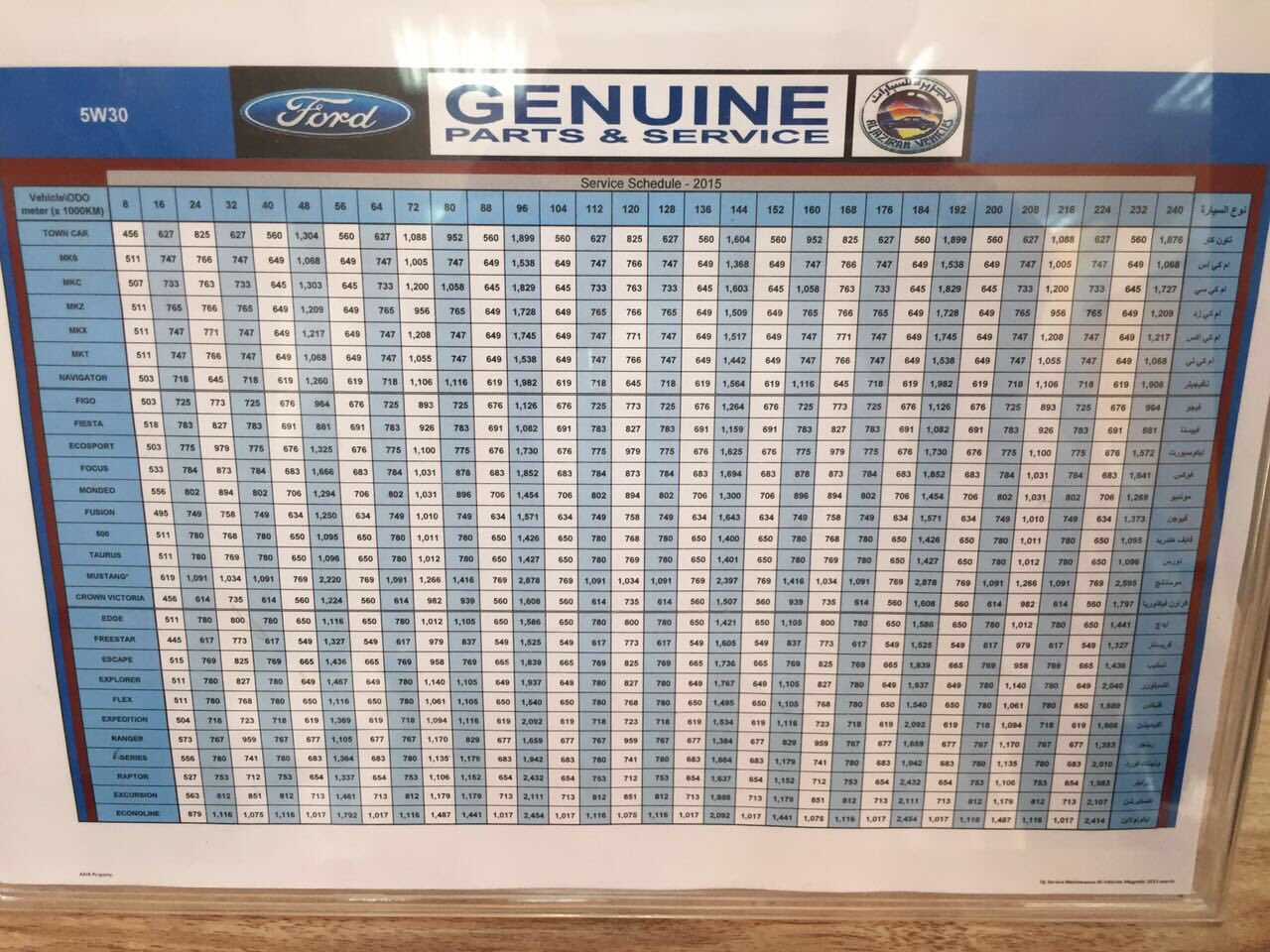 جدول صيانات فورد